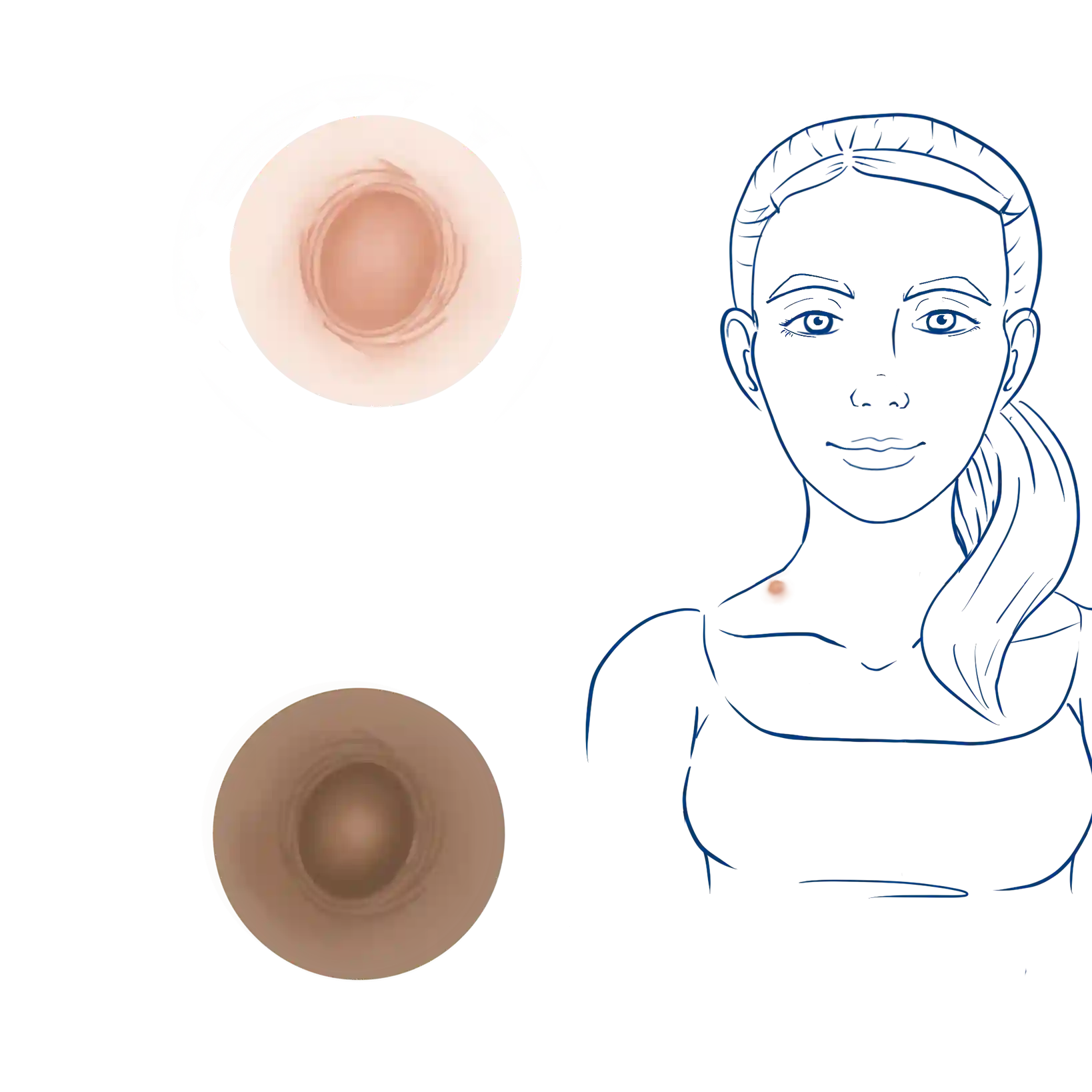 Das Dermatofibrom kann anhand des typischen Erscheinungsbildes als Blickdiagnose diagnostiziert werden. Der Hautarzt oder die Hautärztin beurteilt dabei auch, welche Form des Dermatofibroms vorliegt. Als Blickdiagnose kann ein Dermatofibrom auch von unseren Hautärzt*innen über die dermanostic App diagnostiziert werden. Hier erhältst Du innerhalb von 24h eine auf Dich angepasste Therapie.