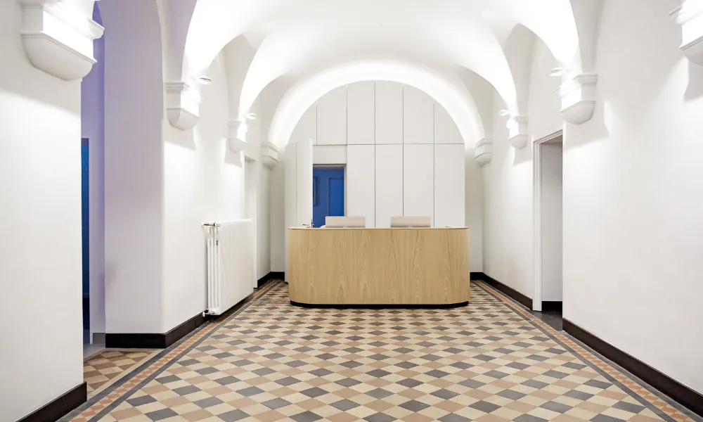 Beim Betreten unserer modernen und großzügigen Räumlichkeiten fühlst Du Dich herzlich willkommen. Die gewölbten Deckenbögen im denkmalgeschützten Gebäude versetzen Dich in einen Zustand von Ruhe und Entspannung.
